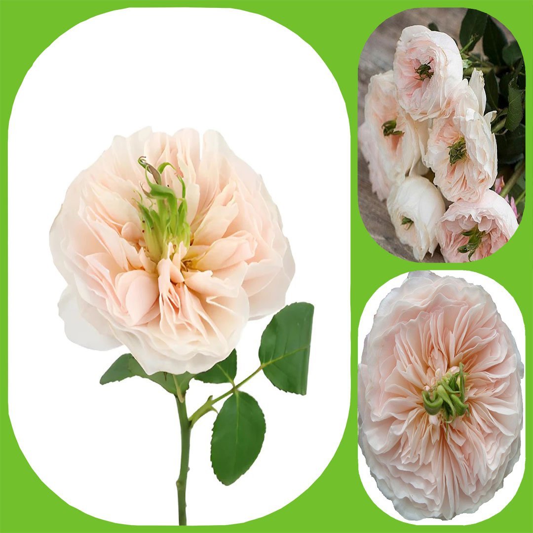Charity is truly unique for a David Austin rose as its green center is quite apparent. Delicate shades of peach and pink contrast sharply with the chartreuse center. Its strong and delightful fragrance makes it a popular wedding and event rose.