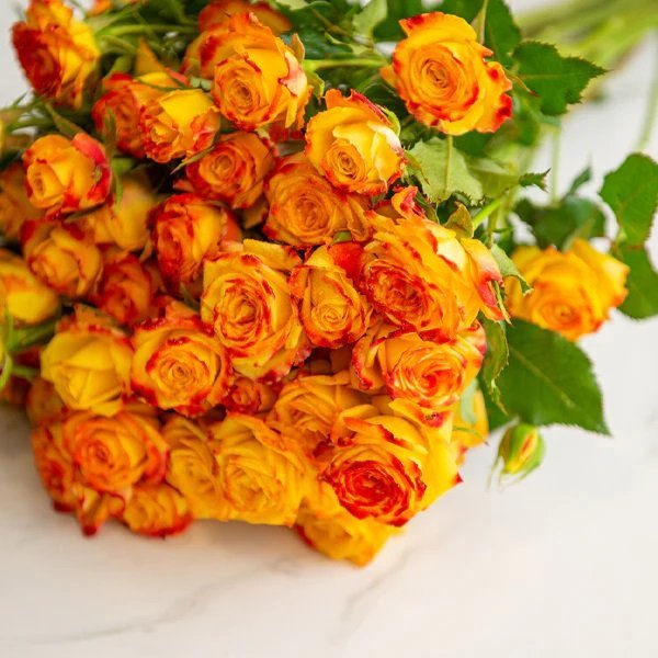Spray Rose Eye Liner is a beautiful Yellow Red Bicolor multi-headed baby rose. These beautiful miniature roses spray out from each stem and are perfect