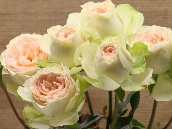 Pavlova – Garden & Scented Spray Roses. Its profusion of petals opens up to resemble a ballerina’s frilly tutu. A soft green outer opens to a delicate pink, peach centre.