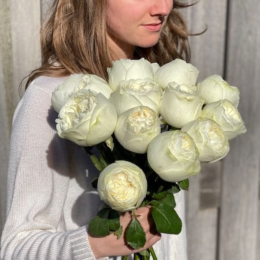 Is it a Peony? No, it looks like! It’s Rose ‘Pure Blonde’, stunning shape and pure color. Pure Blonde – Garden & Scented Roses creamy white rose has a rounded cup shape and is filled with beautifully layered petals. The rose has a large bloom but remains composed and elegant. It can be enjoyed at length as it has a good vase life.