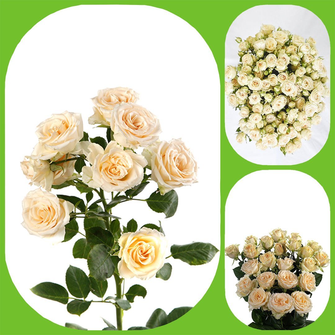 Salinero is a cream Spray Roses Variety. Buy online Wholesale Fresh Cut Spray Roses Flowers with 3 to 5 heads, Direct from the farm. Shipping to floral retailers, florists, weddings and events