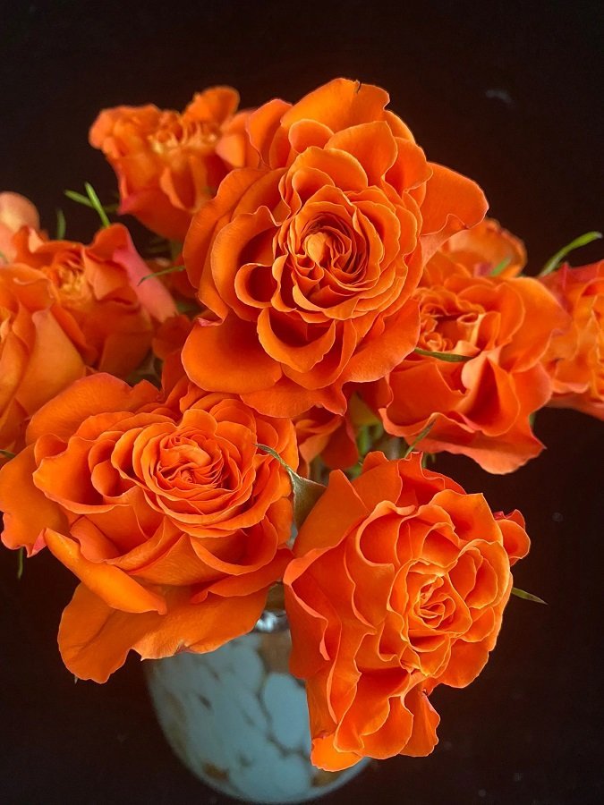 A orange Garden & Scented Spray Roses. With a wonderfully petal color transformation, spray rose sold at a minimum amount of 12 Stems