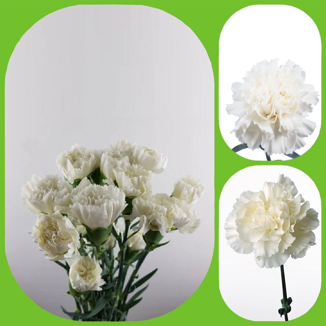 Fresh Cut White Carnations From Kenya to The World. White Color. Our Fresh Cut Carnations are traceable direct to the farm and are sustainably grown. We supply Florists who use them in bouquets, arrangements and wedding flowers