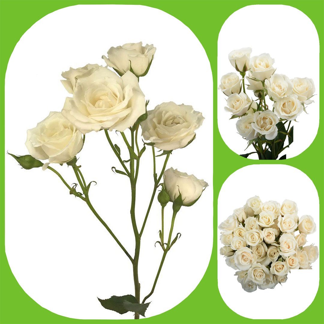 white majolica spray roses is off-white with subtle light pink hues. They create a beautifully delicate vintage appearance, whether used as a single stem, individual blooms on a corsage or boutonniere or within a large bouquet or arrangement.