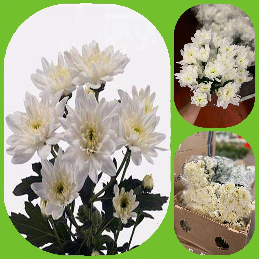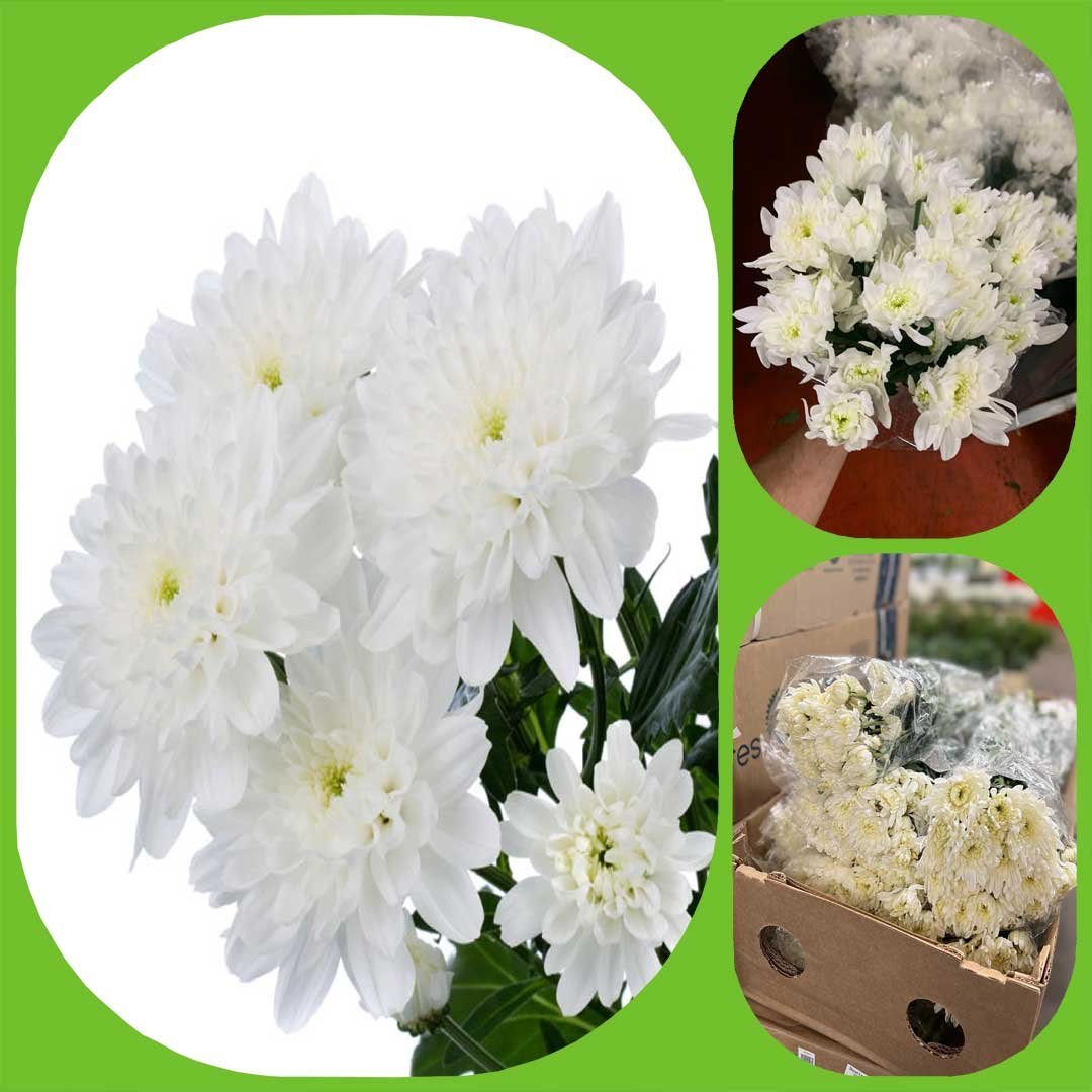 Zembla White is a double white variety of spray chrysanthemum. Buy wholesale cut Chrysanthemum Spray Zembla White for delivery to florists, weddings and events. its 70cm and can last 3 weeks or 21 days in vase life.